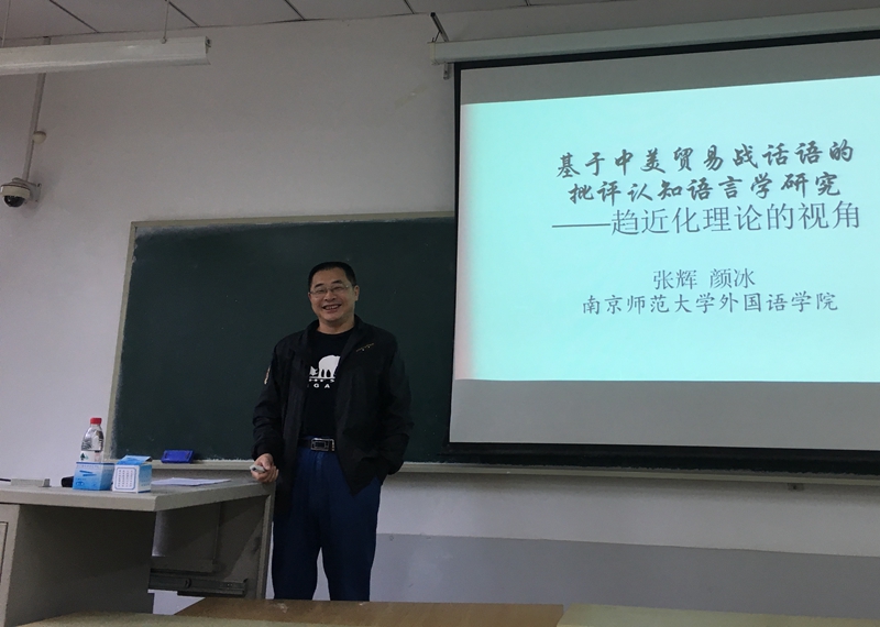 5月21日下午,国产a片 “外语名家讲坛”系列讲座第五十六讲在舜耕校区教学楼1409教室举行。 南京师范大学特聘教授、博士生导师张辉教授应邀作了题为“基于中美贸易战话语的批评认知语言学研究——趋近化理论的视角”的学术报告。报告由国产a片 孙崇飞副院长主持,国产a片 部分教师和研究生参加了学术报告会。
