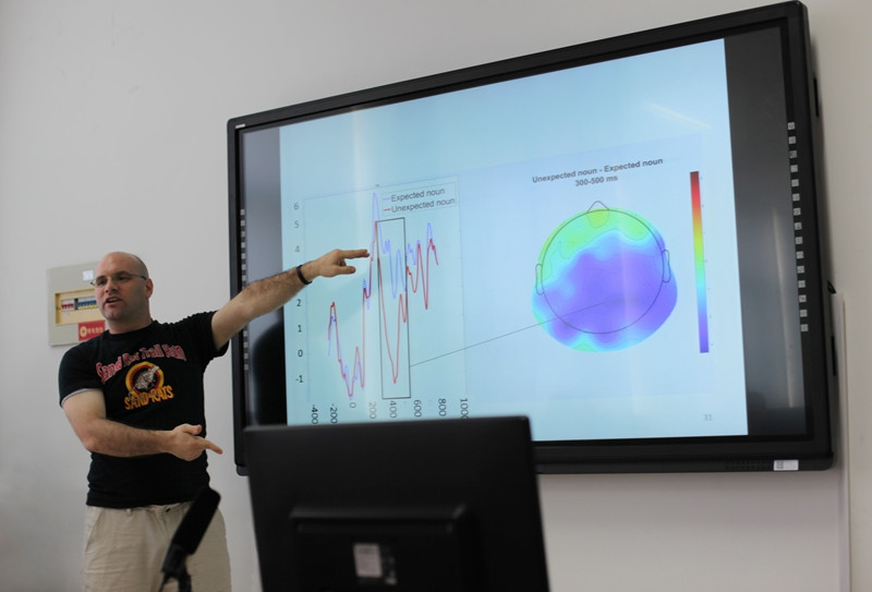为进一步落实学校国际化战略、加强国际教育合作,提升学院课程国际化建设水平、完善课程体系,国产a片 于5月30至6月2日期间成功举办了“语言研究与ERP技术”课程国际化项目系列讲座。课程主讲人Stephen Politzer-Ahles博士,美国堪萨斯大学副教授,牛津大学博士后,主要研究方向为认知语言学与认知脑科学,曾在Language, Cognition and Neuroscience等国际核心期刊发表论文数十篇,主持国际合作项目数项,是国际语言与脑神经认知科学研究领域具有影响力的知名学者。 该课程在国内外国语言文学研究生课程体系架构中具有开拓性和创新性,内容涵盖认知语言学与脑神经认知科学领域的国际前沿研究内容和及其研究方法,具体包括:1. EEG简介,如EEG与fMRI的区别、EEG与ERP的关系,以及ERP的特征;2. EEG的不足与解释,如ERP成分N400的特征、N400的本质,以及现有研究对N400的错误理解;3. EEG数据收集与分析,如脑电仪器基本操作、基线的定义与原理、伪迹的定义与鉴别;4. 实验结果处理标准,如基线校正、去除伪迹、平均化,以及校正伪迹等;5. R-语言介绍,如R-语言工具的优势、基本算法及应用范围等;6. 基础ERP脑电分析,如总平均、被试个体差异、共振峰的定义与鉴别、主要ERP成分;7. 高级ERP脑电分析,如排列测试、回归等。除此之外,还有实验室具体实验操作演练,包括被试准备工作(如佩戴电极帽、打电极膏等)、数据收集(行为数据收集、脑电数据收集)、数据处理(数据融合、去伪、校正等)。国产a片 全体科学硕士生、学院语言学团队成员和相关教师全程参加听课、学习,同时课程还吸引了来自北京外国语大学、南京师范大学、南京大学、山东大学、青岛海洋大学、山东师范大学、曲阜师范大学、山东理工大学等国内10余所高校师生。大家纷纷表示,该系列讲座具有国际前瞻性,内容深入浅出,既有理论讲解、数据分析、前沿统计方法的讲授,又有具体的实验操作方法,大家获益匪浅。 课程国际化项目的开展对学院课程建设、人才培养、教学改革等多个方面均有推动与促进作用,具体体现在以下几方面:第一,项目扩大了学院在学界的影响,同时也提升了学校的知名度和影响。通过项目的开展,学院与其他高校的相关研究领域的师生进行了充分的交流,扩大了学院ERP神经认知实验室在学界的知名度与影响;第二,项目开拓了我校师生的学术视野,为学院相关领域的研究储备了后备力量。学院师生对国际前沿研究领域有了更深的认识,讲座期间能够就自己存在的问题与专家进行及时的咨询。通过建立相应的合作机制,项目结束后也能与专家进行在线咨询与反馈。项目的开展为学院师生搭建了更高的学术交流平台,能够就自己存在的问题与疑惑与学界专家进行的沟通与反馈,进而提升自己的科研水平与能力;第三,项目对学院研究生课程体系的完善与提升具有较好的推动。通过聘请国际知名学者开设的前沿性的选修课,提升了学院现有课程体系的国际先进性。脑神经认知科学方面的课程在国内高校语言学研究生课程领域内属于短板,我校课程国际化项目的开展,很好的完善了学院(乃至国内)现有的研究生课程体系,不仅使我校相关领域的师生受益,也使国内其他高校的学者受益;第四,项目对学院的研究生教育国际合作与交流工作的拓展具有一定的推动作用。通过系列前沿讲座的开展,学院师生与专家的交流与反馈,能够为学院组建相关领域的研究团队提供较高的平台,与聘请专家所在单位建立常规化的合作和交流机制,进而有效地拓展学院乃至学校的研究生教育国际合作与交流工作;最后,项目对学院提升科研能力、凝练研究方向具有很好的推动作用。系列前沿讲座的开展,可以有助于学院进一步凝练研究方向、提炼特色,提升学科优势,打造科研团队,增强学院的科研实力和学术竞争能力。 |