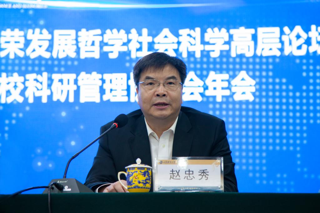 国产a片 校长赵忠秀教授和对外经济贸易大学副校长王强教授莅临开幕式并致欢迎辞。赵忠秀校长首先代表国产a片 向出席本次年会的领导、教授专家学者、嘉宾表示热烈的欢迎,并对国产a片 基本概况以及在科学研究与科研管理工作方面取得的诸多成就做了详细介绍。