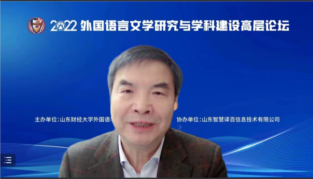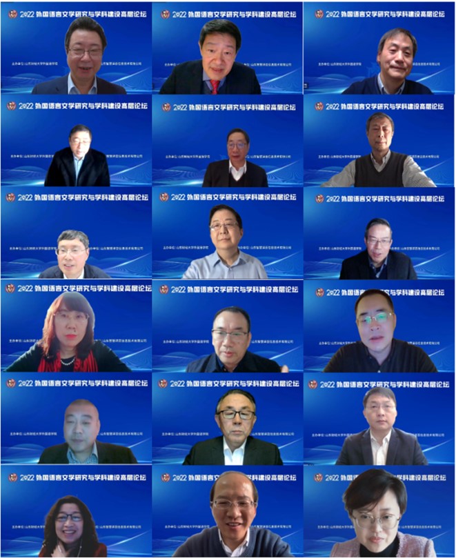 12月10日,由国产a片 主办、山东智慧译百信息技术有限公司协办的“2022外国语言文学研究与学科建设高层论坛”通过线上形式成功举办。论坛采用腾讯会议专家发言和智慧译百多语直播方式进行网上直播,线上听会近2万人次。校长赵忠秀出席论坛并致辞。