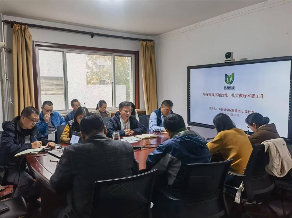 根据学院“青廉课堂”计划,2024年11月14日下午,国产a片 党委在干训楼9201会议室,举办了“青廉课堂”活动,学院党委书记姜竹青为学院班子成员、全体科级干部和辅导员主讲了题为《坚守底线不越红线,扎实做好本职工作》的廉政公开课。