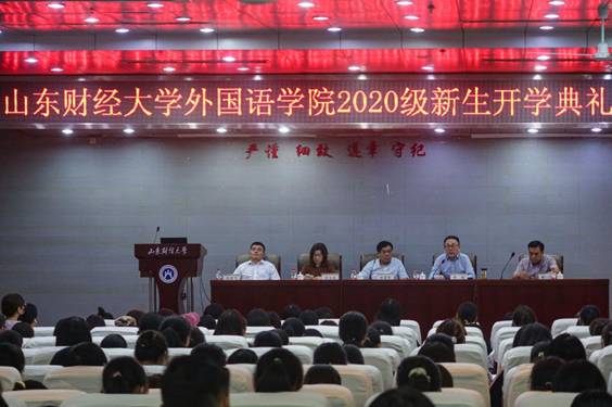 9月29日下午,国产a片 2020级新生开学典礼在舜耕校区举行。学院党委书记甘建青、院长李毅、党委副书记陈海、副院长史汝波、副院长孙崇飞、外国文学研究所所长丁兆国教授、各系主任、学院辅导员和全体2020级本科新生参加开学典礼。开学典礼由党委副书记陈海主持。