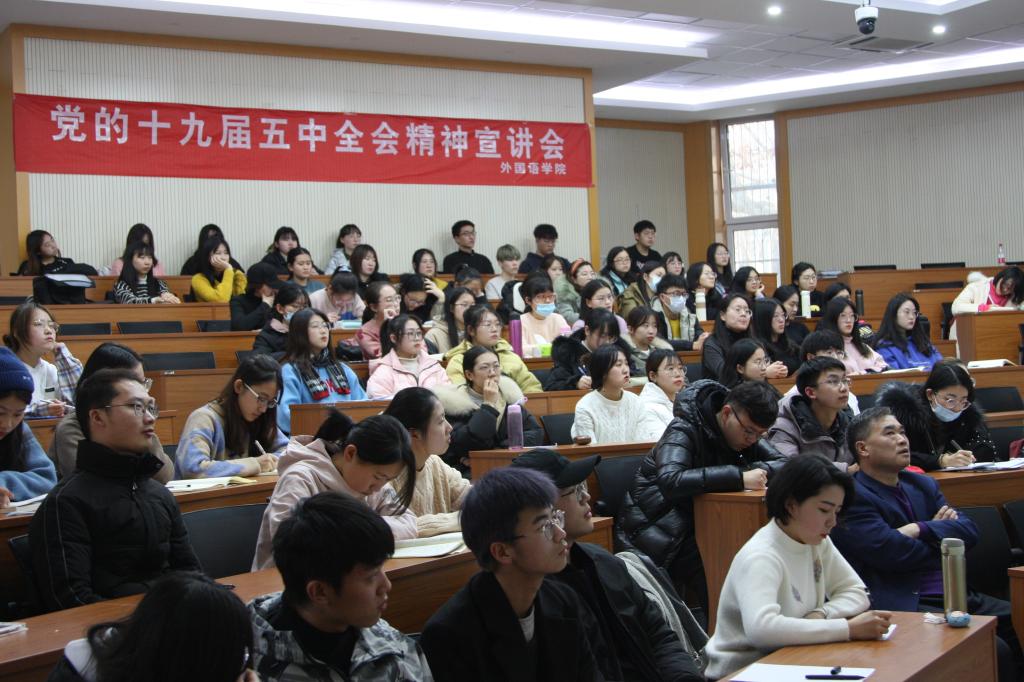 12月18日下午,山东省属高校学习贯彻党的十九届五中全会精神政策宣讲团成员、国产a片 团委书记赵雅莉在第三阶梯教室为学院学生干部、入党积极分子、学生党员及其他学生代表作了题为“全面开启建设社会主义现代化国家新征程”的宣讲。国产a片 党委副书记陈海出席并主持此次宣讲会。