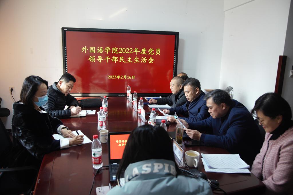 2月16日上午,国产a片 召开2022年度党员领导干部民主生活会,学校指导组成员高磊、郑情情到会指导,院党委书记姜竹青主持会议,院长于秀金、副书记陈海、副院长解玲参加会议,副院长丁兆国、党委专职组织员齐文茜列席会议。