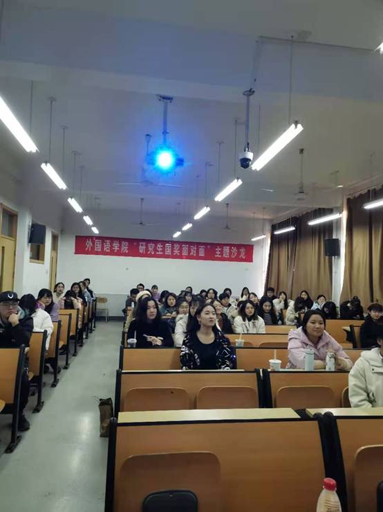 12月3日下午三点半,“2020年国奖面对面”主题分享会于国产a片 舜耕校区成功举办。本次分享会邀请了2018级外国语言学及应用语言学的郭俊红同学和2019级英语口译的伦雪婷同学分享其获奖心得和学习经验,并邀请解玲教授为2020级全体研究生分享学习方法。