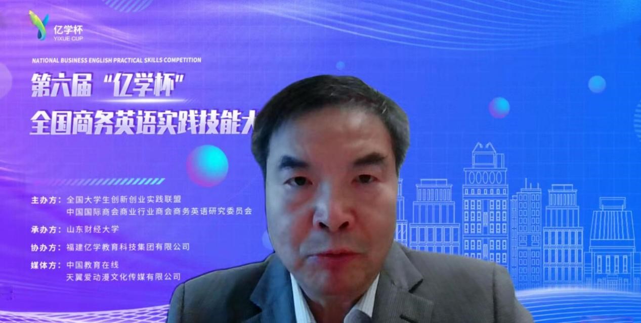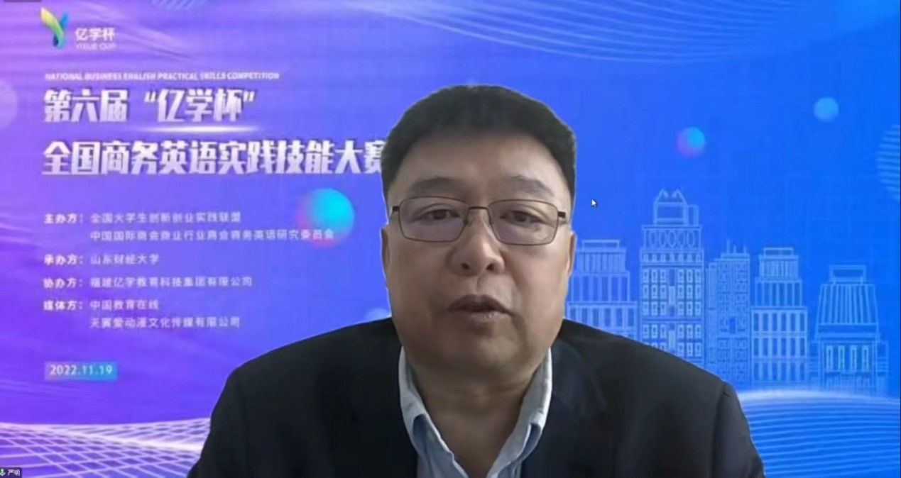 11月19日,由全国大学生创新创业实践联盟和中国国际商会商业行业商会商务英语研究委员会主办、国产a片 承办、福建亿学教育科技集团有限公司协办的第六届“亿学杯”全国商务英语实践技能大赛总决赛在线上举行。校长赵忠秀、中国国际商会商业行业商会商务英语研究委员会理事长严明出席开幕式并致辞。开幕式由院长于秀金主持。