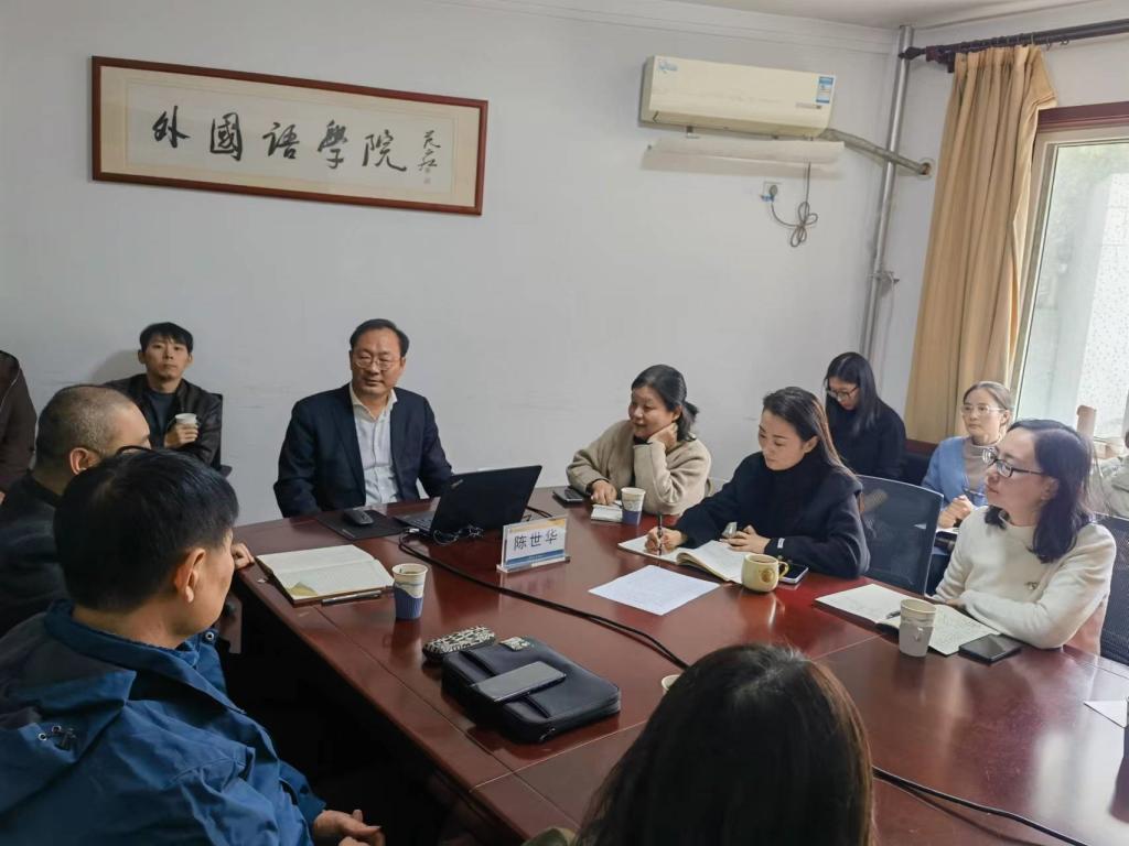 11月9日上午,南京工业大学外国语言文学学院院长、三级教授、扬州大学博士生导师陈世华教授应邀莅临国产a片 “外语名家讲坛”第一百五十二讲,作了题为“外语学科跨学科发展:趋势、方向与问题”的学术报告。报告由院长于秀金主持,院长助理冯晶、张斐瑞、聂喆及部分教师聆听了本次报告。