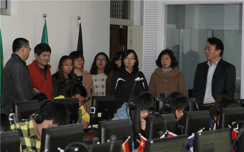 首先,李毅发表了热情洋溢的致辞,表达了加强横向交流互访,共同促进双方教学科研和管理水平的愿望,介绍了国产a片 的历史发展、整体概况、发展前景以及国产a片 近几年积极推进外语学科内涵式发展、强化学科竞争优势、优化教研团队建设、完善基础设施等诸多方面所做出的努力和取得的成效。双方围绕财经类高校外语专业在人才培养和未来学科规划以及专业建设等问题进行了友好而深入的对口交流。 最后,代表团一行参观了国产a片 同声传译实验室、计算机辅助翻译实验室、专业实验室等教学基础设施。代表团一行对国产a片 在学科建设、人才培养和教学管理等方面所取得的成绩表示赞赏。