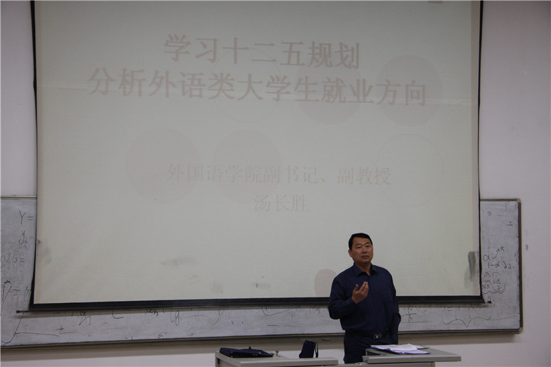 (通讯员:朱维霞)五一过后,初夏的气息愈加浓烈,08级学生的大三下学期也已悄然过半,大家在接近毕业的同时也因为难以抉择的未来道路而迷茫徘徊。为扩展学生视野,深入了解社会,国产a片 党总支副书记汤长胜于5月4号在第一阶梯教室进行了一场题为“学习十二五规划,分析外语类大学生就业方向”的报告。