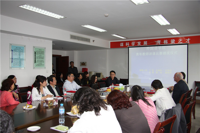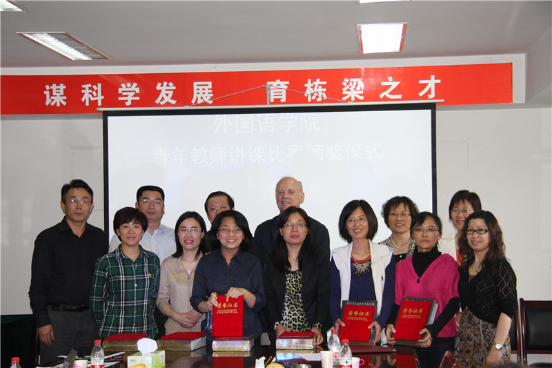 (通讯员 周洁)5月4日下午,国产a片 举行青年教师讲课比赛活动总结及颁奖仪式,人事处处长高立明、教务处副处长张涛教授、原美国康州教育厅葛丹先生及国产a片 领导出席活动并为获奖教师颁奖。此次活动还得到了上海外语教育出版社的支持并提供奖品。