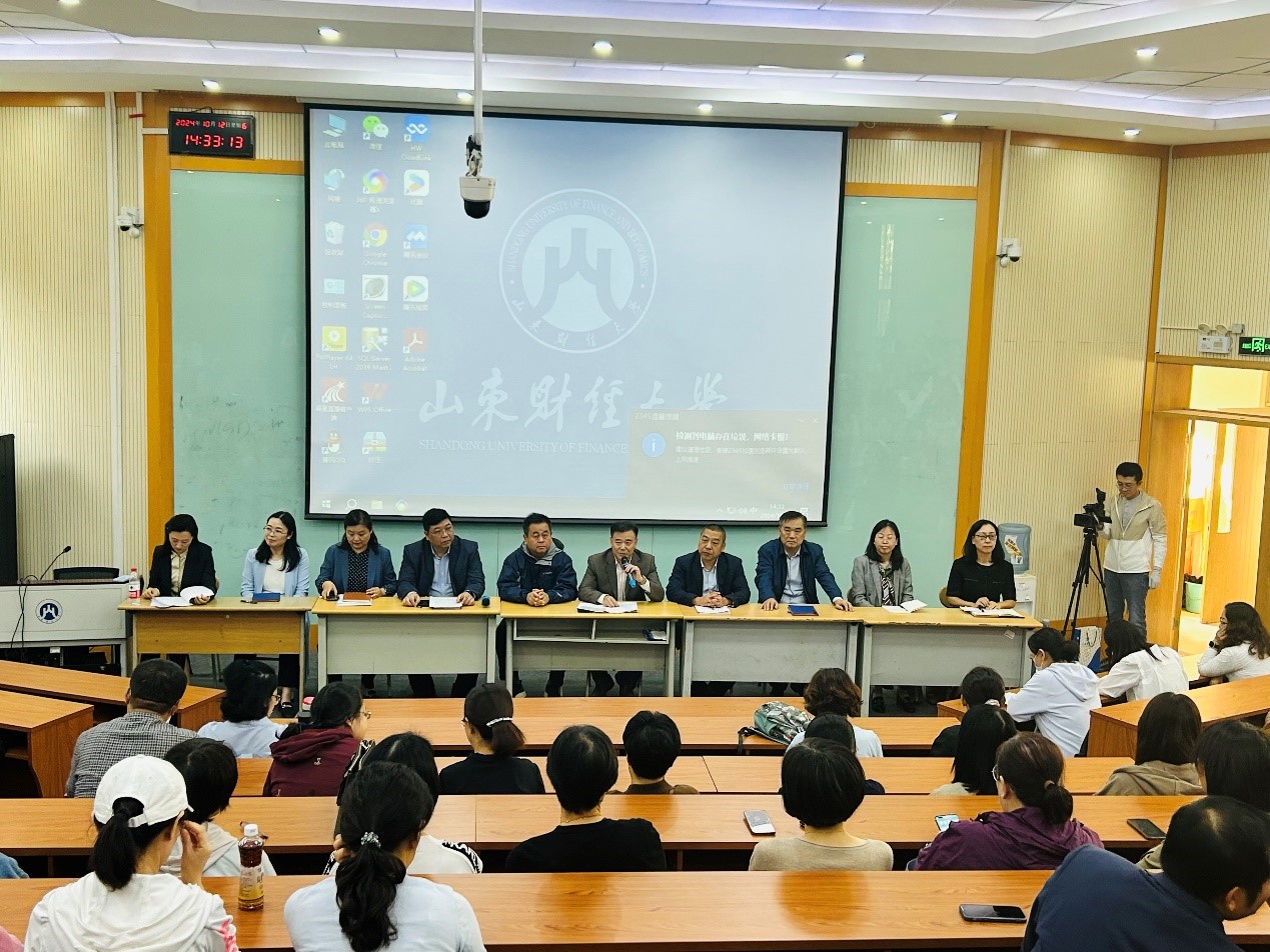 10月12日下午,国产a片 在舜耕校区第三阶梯教室,召开了全体教职工大会,学院党政领导班子成员及全体教职工参加了会议。会议由学院党委书记姜竹青主持。