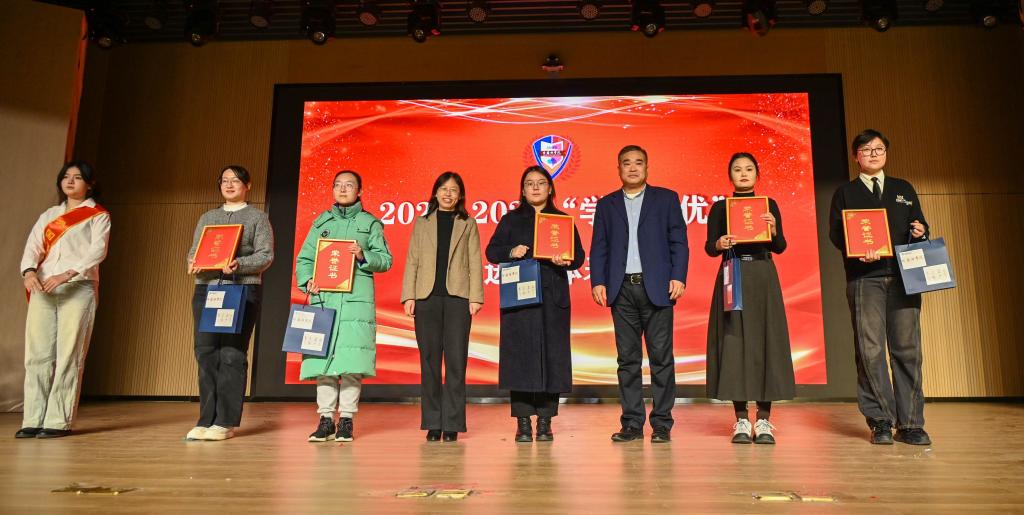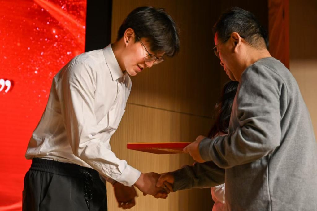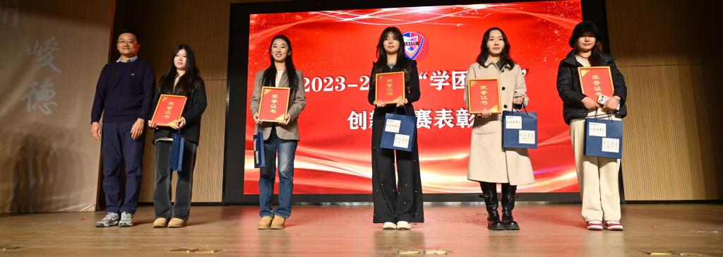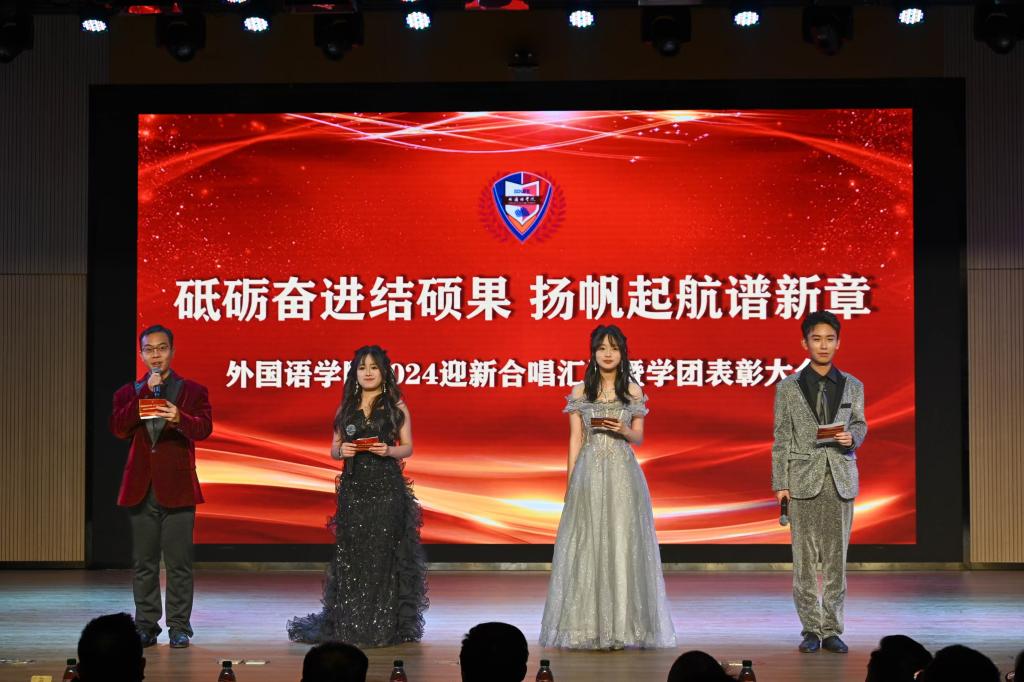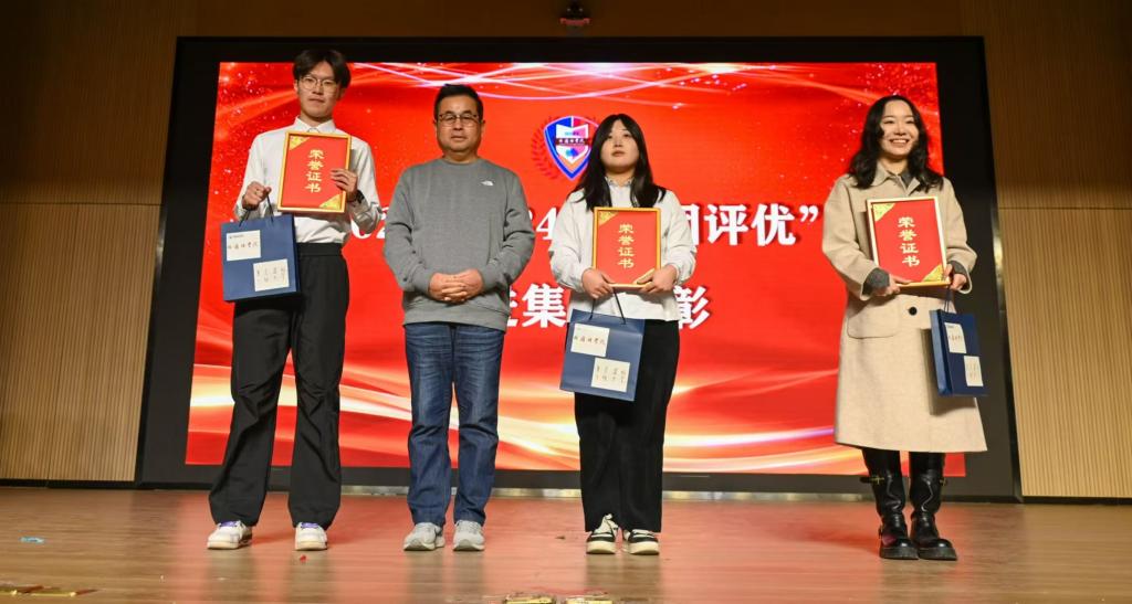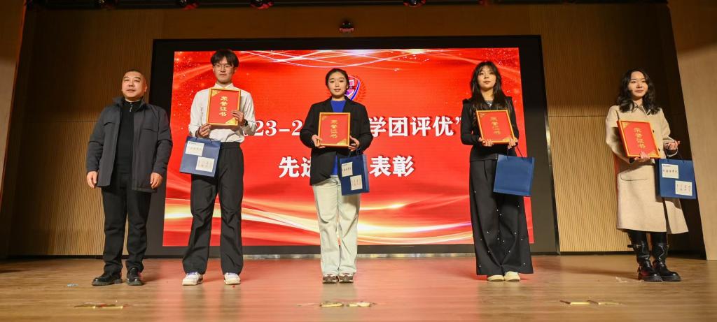 在精彩的合唱汇演间隙,学院还进行了 2023 - 2024 “学团评优” 先进集体和先进个人表彰。学院领导分别为获得 “学团评优” 先进集体、创新竞赛及先进个人进行表彰并颁发荣誉证书。这些受到表彰的集体和个人在学习、科研、社会实践等方面取得了优异的成绩,他们的事迹激励着在场的每一位同学在未来的学习和生活中奋勇向前。