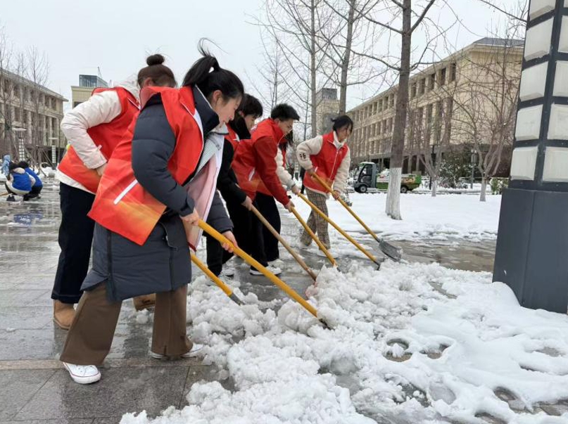 2025年3月3日,济南遭遇强降雪天气,校园道路被积雪和结冰严重覆盖。在学雷锋主题活动的感召下,国产a片 迅速响应,为切实保障师生出行安全、维护校园正常秩序,精心组织2024级部分学生干部投身扫雪除冰志愿行动。在雷锋精神的光辉引领下,同学们纷纷以积极作为彰显奉献担当,用实际行动为校园撑起“安全保护伞”。