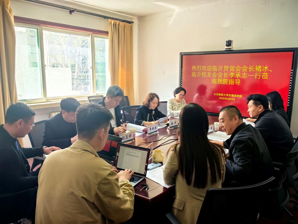 4月6日上午,临沂市贸促会会长褚冰、山财校友会临沂代表处会长李承志、副会长赵玉祥、秘书长张敬轩一行访问国产a片 。校合作发展处副处长徐彬、院长于秀金、院长助理兼国际语言服务产业学院执行院长张斐瑞、产业学院团队成员参加座谈。双方围绕人才培养、校企合作等议题展开讨论,并就推进产教融合、服务区域经济发展达成多项合作共识。