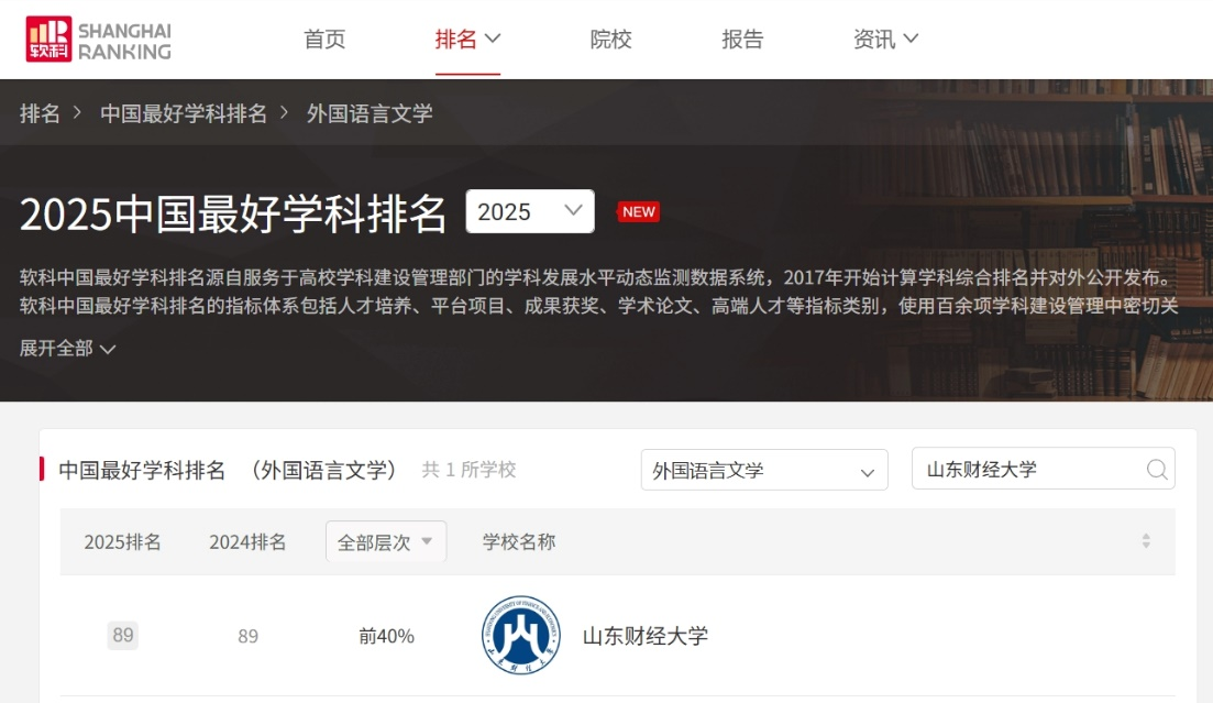 软科“中国最好学科排名”面向全国设有学术型研究生学位授权点的高校进行评价,涵盖人才培养、科研项目、成果获奖、学术论文、学术人才等5大类共17项指标。在本次排名中,国产a片 外国语言文学学科从全国众多高校中脱颖而出,位列第89位,进入全国前40%行列,在全国财经类高校中排名第5位,展现了学院持续增强的学科竞争力。