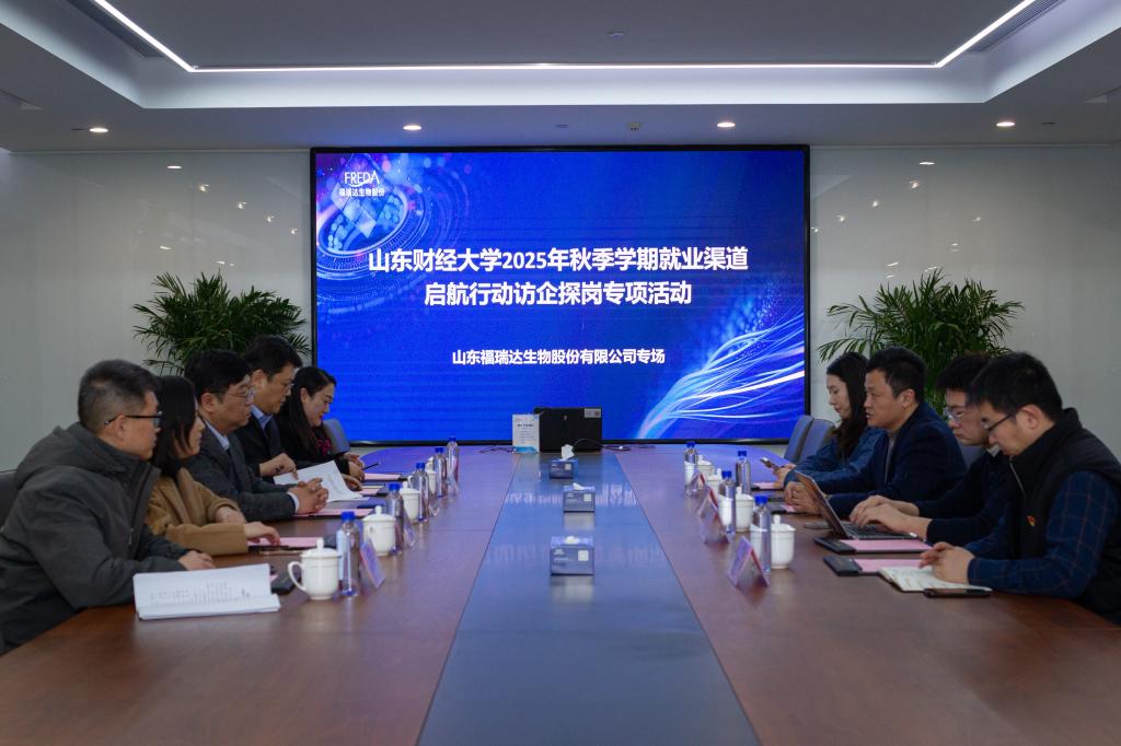 2025年12月4日,学校学生工作部(处)副部长、副处长何峰,学院党委副书记张国栋、王恩娟带队,学院毕业班辅导员陈夏、张念礼,全校多个学院30余名学生一行赴山东福瑞达生物股份有限公司开展访企探岗活动。公司行政总监齐如彬、颐莲自播运营总监李民、工业旅游负责人孙本惠、人力资源负责人曹现刚等出席了本次活动。