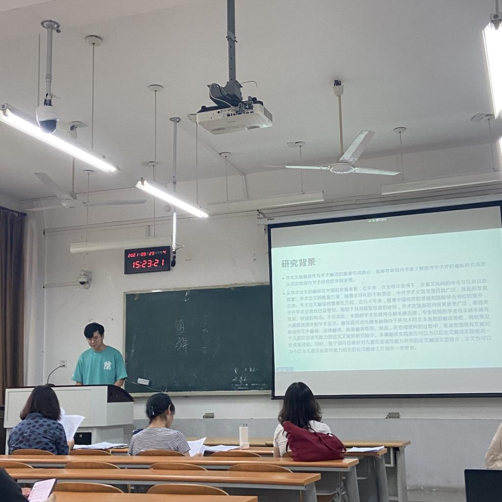 2021年9月23日下午,国产a片 2020级翻译硕士研究生开题论证会于舜耕校区举行。2020级英语笔译、英语口译专业的40名研究生参加了本次论证会,学生就论文选题的研究意义和价值、研究状况及拟解决的问题、研究方案和进度等作出说明,并进行可行性论证。经专家组论证,全部学生通过了本次论文开题。
