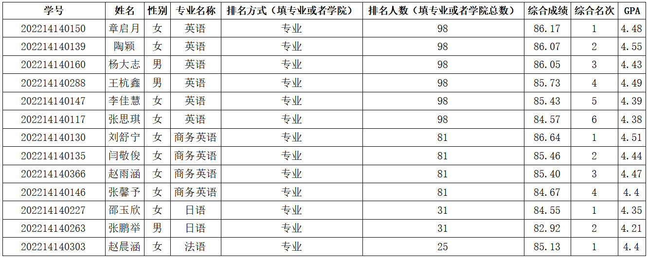 外国学院2026年推免生初选名单