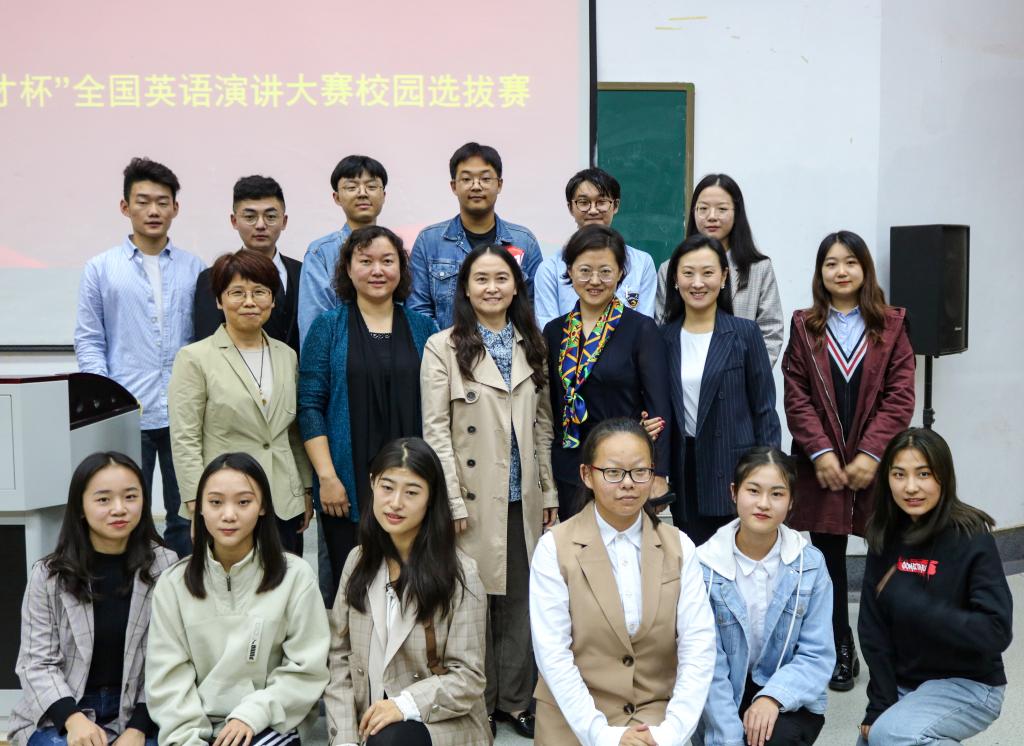 2019年10月11日下午,国产a片 第六届外语技能系列大赛暨“外研社·国才杯”全国英语演讲大赛校园选拔赛在舜耕校区第二阶梯教室举行。高永红、马宏伟、王朋、解玲和张斐瑞五位老师担任评委,2018级英语专业于淑涵和2017级英语专业王哲娴担任主持人,国产a片 各年级同学观摩了演讲比赛。